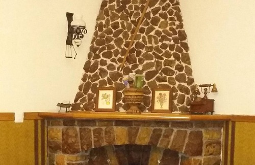 On the ground floor, which leads to the house with two entrances, there is the living area with a dining room with a beautiful stone fireplace and a sofa bed for 2 people, as well as a kitchen divided from the living room by a beautiful arch in Stone ;