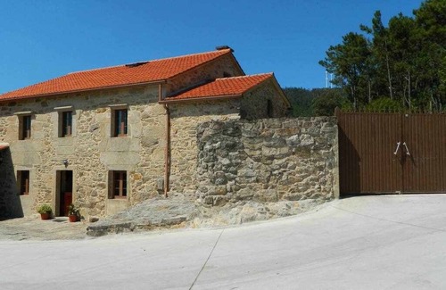 asa da Crina has low traffic situation in the estuary of Muros and Noia. A perfectly restored and tastefully furnished stone house. On the ground floor is a kitchen with two tables for up to 12 persons, large living room with sofas and a toilet. On the first floor are four bedrooms with four double beds and three baths (2 ensuite). Under the roof are two further bedrooms (one with 2 single beds and one double) and a fifth bathroom. The house with 250 m² living space is situated on a 1500 m² plot of land with a big outdoor table and grill. Freixo is surrounded by beautiful nature. Beyond the village lies the mountain range that runs parallel to the Galician coast and is perfect for walking. The nearest beach is 1.4 km away, up to 30 more beaches are within 20 km radius. Washing machine and dishwasher are provided. Bed linen and towels are included in price.