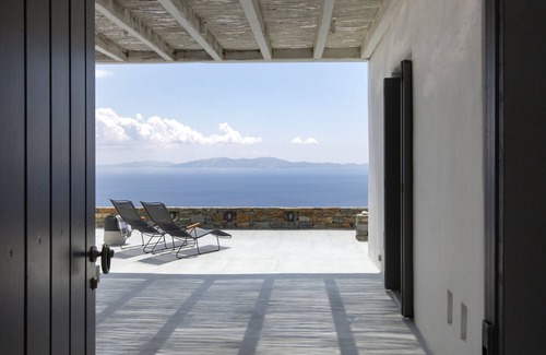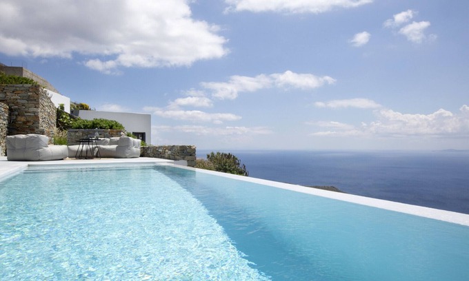 Designed by awarded Greek architects the villa is situated at the outskirts of Kardiani, a UNESCO-protected village, blending calmness, cultural richness and pristine views.