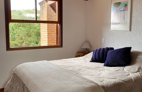 Super house decorated and equipped with five suites and capacity for 10 people. Garden and wonderful views. football field, doll house, playground, canopy tours and zip lines - private and guaranteed fun for the kids. Covered barbecue and built the house, whirlpool for 10 people. delicious fireplace. Steam and sound system in all public areas. Wi-Fi and 24-hour security. Green, very green, joy, joy.
