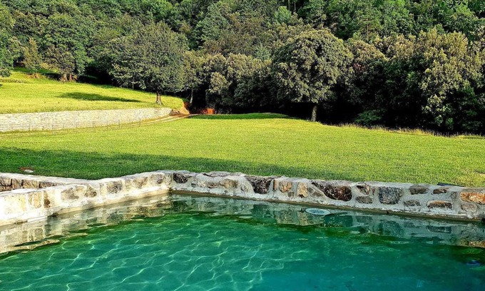 La Plana is a four-sided stone farmhouse from the early 1700s, recently restored, combines respect for the history that precedes it with modern comforts. Respectful with the environment; the electricity supply comes from solar panels installed on the same farm, the water from the fountain, the water from the water raft enabled for bathing ("swimming pool") also comes from the river, 100% natural.