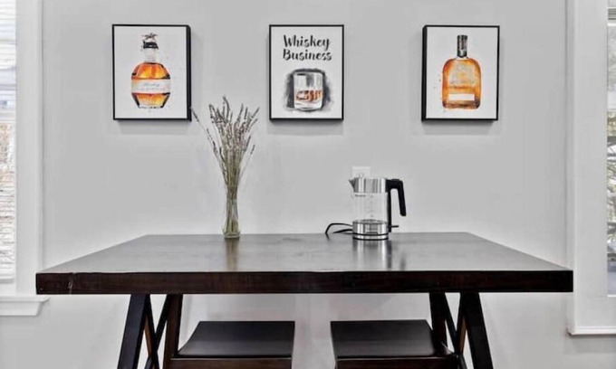 The space spread across 1,600 square feet, our cozy house has 4/5 cozy bedrooms, 3 Smart TVs, perfect for accommodating a family or group of friends. The first floor comprises a spacious a bright living room with comfortable pull out sofa bed, a fully equipped kitchen, and a bathroom complete with a convenient washer/dryer. There are 3 bedrooms on this level with a king bed, full bed, and a twin bed. Upstairs, you'll find a peaceful bedroom with a queen-sized bed, offering a private balcony perfect for enjoying a morning cup of coffee or an evening glass of wine. Adjacent to this bedroom is an open space with two twin-sized beds, providing ample room for rest and relaxation.