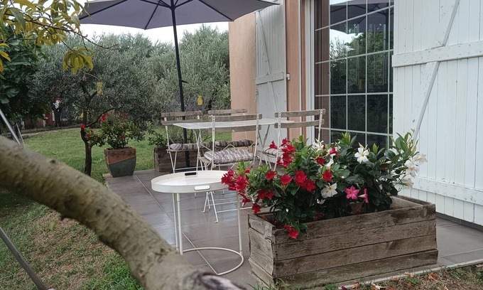 Terraced house of 67m2, independent entrance with garden comprising 2 bedrooms, bathroom, large room of approximately 25m2 with fitted kitchen, living room, dining room. Located in the heart of Provence, 200m from the village center with all amenities (pharmacy, doctors, dentist, supermarket about 1.5km, a dozen restaurants), Provencal market every Wednesday and Saturday morning. 15km from the Lac de Sainte Croix, about 20km from the Verdon Gorges, 60km from the sea. Tennis courts 100m from the rental, pétanque, hikes etc ...