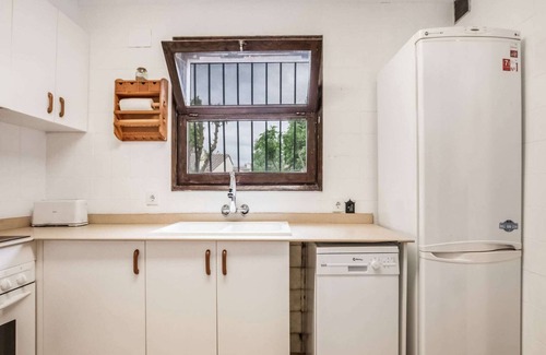 Semi-detached house of 126 m² comfortable and fully equipped, overlooking the garden. It is located in an ideal area for families and next to the sea (500 meters away). It has a garden, garden furniture, fenced plot, terrace, barbecue, internet access (Wi-Fi), balcony, electric radiators heating, air conditioning only in the living room, garage in the same building, 1 TV, satellite. The independent kitchen, with vitroceramic, is equipped with fridge, oven, freezer, washing machine, crockery / cutlery, utensils / kitchen, coffee maker, toaster, dishwasher, microwave and juicer. 3 bathrooms: Upper floor complete bathroom (shower, sink and toilet) and washing machine. Main floor shower room with toilet and sink. Basement floor shower room with two showers and sink. It has 3 bedrooms, 2 double beds and a trundle bed, with capacity for 6 people. It has a fence for children on the stairs of the upper floor to avoid the fall of the small ones.Garage basement with access through a ramp from the road open interior in farm.