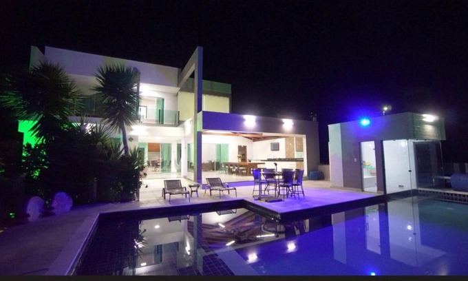 House in Escarpas do Lago! offers accommodations in Capitólio, 25 miles from Canyon Furnas. This property offers access to a balcony, free private parking, and free Wifi. Guests can use a garden. The air-conditioned vacation home is composed of 6 separate bedrooms, a fully equipped kitchen with an oven and a microwave, and 8 bathrooms. A flat-screen TV is provided. The property offers garden views. The vacation home also provides a pool with a view and a sauna for guests to relax in. Varginha Airport is 104 miles away.