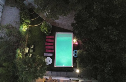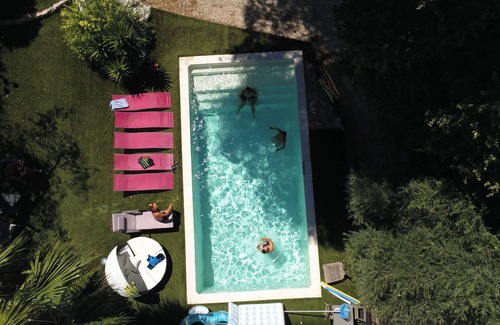 The heated pool is privatized 6 days a week with a Florida decor in a green setting in front of the Jean Moulin Park with its large oaks and pines, a real pleasure.