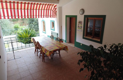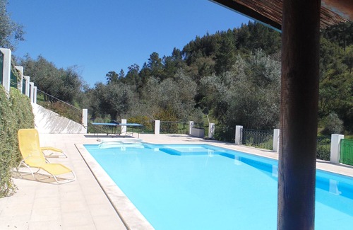 With stunning views of the property our house is part of a century-old house made of "taipa". At your disposal you have a house with two twin-bedded bedrooms, a living room with a sofa bed, a well equipped kitchenette, a bathroom and a large covered terrace. Outside we have a lot of space to play and relax. In the warm season you can enjoy our pool area, take a dip, sunbath or even a take a nap. We have a small children's playground, a trampoline, a small football pitch, volleyball/badminton net and a table tennis table. You can admire the fish in our small pond to the sound of cascading water, take a walk or bike ride to discover the village and its surroundings.