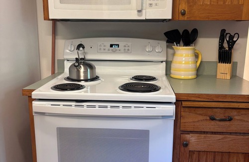 The main house at Elsie’s Humble Haven offers everything you need for a comfortable stay, including a fully equipped kitchen, two cozy bedrooms, and a full bathroom. For extra sleeping space, there’s a pull-out couch nestled in the alcove reading nook. Stay connected with WiFi and enjoy Roku TV in both the living room and main bedroom. A washer and dryer are also available for your convenience.