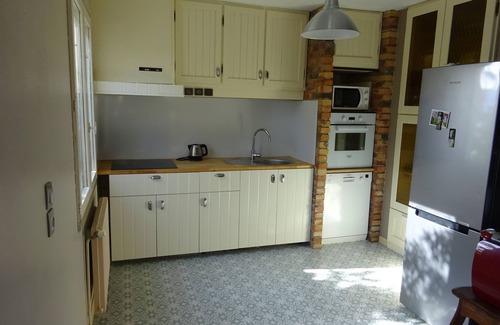- a kitchen overlooking the living room fully equipped (4 plates dishwasher, oven, microwave, fridge / freezer, dishwasher, coffeemaker and Tassimo, toaster ...),