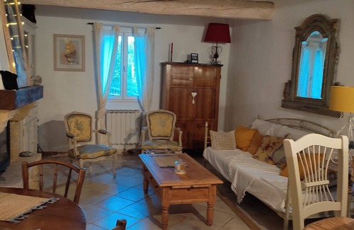 Very pleasant house converted into a cocoon. A large living room with kitchen and all semi-buried comfort for a comfortable summer. A pretty room with a view, a baby bed if needed. A spacious bathroom, a pleasant living room with small open kitchen and fireplace. A stone's throw from the beautiful village square. restaurant, cafes, one of the most beautiful villages in France. Numerous visits to the surrounding areas, lakes of Sainte Croix du Verdon, perched villages and typical Provençal villages. Wine trail. Hiking. Saint Maxime and Saint Raphaël 40 minutes away.