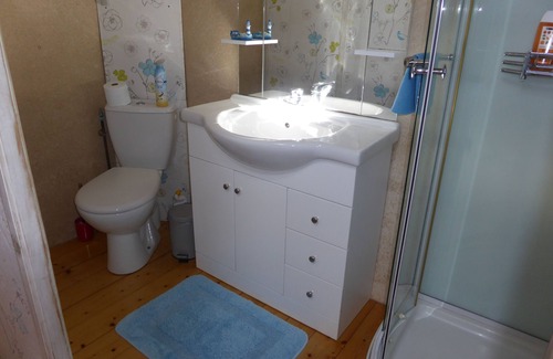 Upstairs attic bedroom with 140 bed and separate shower room / wc.