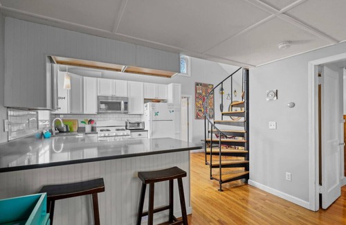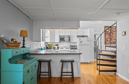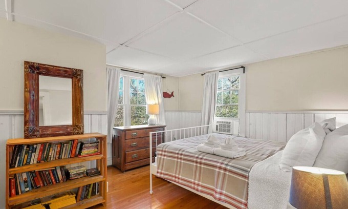 Woods Hole! Location Location! This 2 bedroom, 1 bath home is a cozy 1950s-era Cape Cod cottage is located in the heart of Woods Hole. You are a few minutes walk to all of the Woods Hole excitement: the ferries to Martha's Vineyard; restaurants and museums. And just a short drive to Falmouth, and the beaches. The home has 1 queen bed in the main floor bedroom, 1 queen bed in the loft upstairs. Beautiful kitchen is fully stocked. Window AC units in each bedroom. Smart TV. Quiet and Comfortable