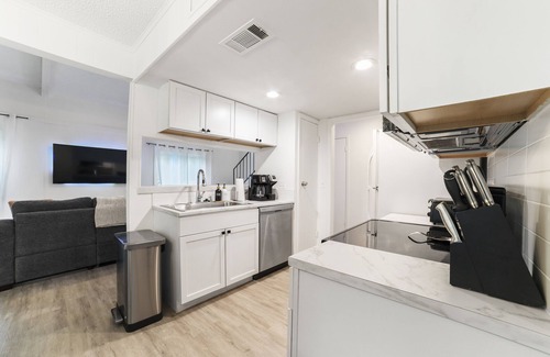 Welcome to our chic home nestled in Austin's charming Westlake neighborhood. This stylish haven embodies contemporary elegance and pristine comfort. Enjoy the sleek open layout, minimalist aesthetic, and ample natural light. Relax in the inviting living area, cook in the fully equipped kitchen, and experience restful nights in well-appointed bedrooms. Outside, a private patio offers a tranquil spot to unwind. Conveniently located in the safe and quiet west side of Austin.