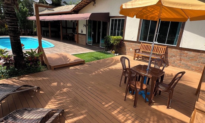 Best-rates for the Domingos Martins cottage starts from $184 per night with includes Barbecue/Outdoor Cooking, Internet, Wellness Facilities, Parking, Bedding/Linens, Laundry, Sports/Activities, Guest Services, Child Friendly, Air Conditioner, Pool, TV, View, Private Pool, Ocean View, Kitchen, Pet Friendly, Balcony/Terrace, Security/Safety, Fireplace/Heating, Entertainment with all other amenities. Perfect for Weddings is committed to ensuring every guest experiences a comfortable and extraordinary stay, whether planning a romantic getaway, a honeymoon, a pet-friendly stay, or celebrating with the entire wedding party.