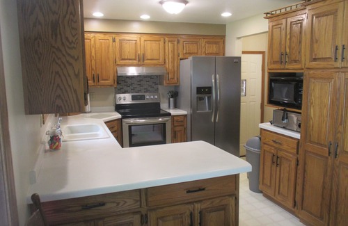 Welcome to your ideal wedding accommodation at House is a Premier Partner! Lambeau Field Amazingly close - walk to the Game!. Nestled just two blocks from the iconic Lambeau Field, this charming property provides everything you need for a romantic getaway or a wonderful wedding celebration. Imagine exchanging vows with the vibrant energy of Green Bay surrounding you, followed by an intimate reception in our spacious and updated home, accommodating up to 8 guests comfortably.