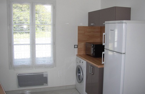 Interior equipment: complete crockery, washing machine, dishwasher, fan oven, microwave, fridge-freezer, ceramic hob, combined espresso machine, toaster, electric kettle, multi-function robot, iron + table, vacuum cleaner, television, DVD player.