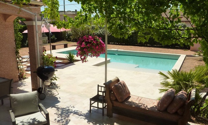 Traditional Provencal House in 2007 on flat ground of 1200 m2 facing south with private pool in 2015, 9x4m, submerged beach 8 m2 treatment and control automatic chlorine.