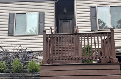 122 Crest offers 4 bedrooms, 2 baths. It sleeps 10 comfortably. There is a flight of stairs on the exterior front and a flight off the garage to climb for entrance. A single covered parking on the side can get you in, off of the back deck, with just a couple of stairs. Once inside, everything is on one level. The living/kitchen/dining areas are open. Kitchen is stocked with any item you will need to prepare meals. A gas log fireplace is the center of the room. The master bedroom/master bath has a king size bed, flat screen TV, a large walk in closet, soaking tub, double vanity, walk in shower. There are 2 additional bedrooms at the front of the house, both with queen size beds, and a full bath off of the hall. Queen over queen and twin over twin bunk beds and a large flat screen TV are in the bunk room. The media room has a 65 inch TV with 4 reclining media room chairs. A full size washer and dryer in the laundry room. The back deck is where we spend a lot of time. It covers the entire back of the house where there is plenty of seating for cookouts and get togethers. The house backs up to hole #3 on Indian Hills Golf Course. Summertime is water time! We love hanging out on the lake with our kids and grandkids. A neighborhood launch, pond for fishing, trails to hike and golf to play are all just minutes away. 122 Crest is our go to place to get away from the busyness of life. We love winter time as much as summer time! Cold, dreary days are perfect for staying inside around the fire and watching TV or reading a good book1