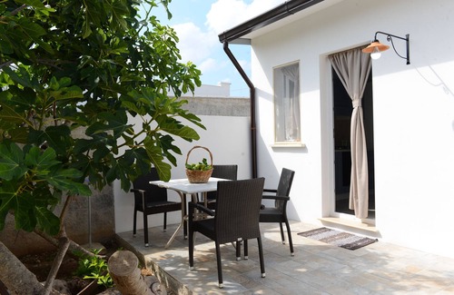 For your holiday in Puglia in the renowned Salento, in the Bay of Gallipoli, you rent a house with a characteristic structure, as you can see from the photos, well finished and furnished for a Mediterranean-style sea holiday. The house is renovated from an old rural block, bright and colorful today with the typical white and blue colors. It 's all equipped and air-conditioned, is composed of a double bedroom in the loft, bathroom, kitchen, sitting room with sofa bed from a place where you can open a single bed for a total of 4 beds. The house has a garden equipped for lunch and dinner outside, parking, washing machine, outdoor shower etc. In the villa you will find at your disposal two deckchairs and a beach umbrella to use at the beach, also a document itinerary we personally made, with photos and description of the most beautiful beaches to visit, also the characteristic centers to see in Salento and the advice for supermarkets, bars and restaurants in the area, where you will find courtesy and an excellent kitchen, all at a good price. Guests will be honored with typical products of our production, such as Negroamaro quality wine, extra virgin olive oil fruit and vegetables in season. Also visit to the stables owned by us for pictures for children or small horse ride. The house is 40 minutes from the airport of Brindisi Casale, 25 minutes from Lecce, 10 minutes from Gallipoli and 25 minutes from Otranto. The Salentino territory has a great location, in fact in the Gallipoli Bay is part of a crossroads that will allow you with just a 10 minute drive to visit all places of Gallipoli marina, as lido Shells, Green Bay, the tip of the Swine, Rivabella , lido Pizzo, lido San Giovanni. At 100 meters from the house there are various shops, such as tobacco, food supermarket, grocery store, bar and pizzeria. From our side maximum availability for any need or necessity, for us the welcome is important to ensure you have a memorable holiday between sea and land.