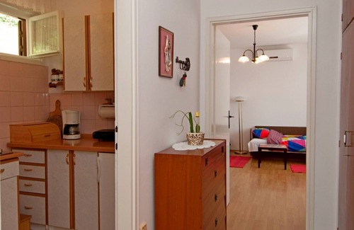 Accommodation Mirella offers space up to 4 guests. The picture perfect nature and rocky and pebble beaches are 400 m away. Share the photos of your well-deserved vacation using Internet available for your use. No crowds, no fixed mealtimes and no overcrowded terraces - awake your inner chef using available Grill and indulge in delicious local food. Nice little added bonus is view of Sea and green area.