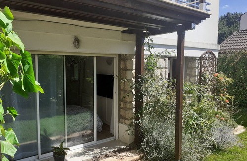 Pretty bright villa in quiet area with forest, parquet floor, garden level with private terrace. Free parking in the street. Two bedrooms with double bed (140 and 160) and a double sofa bed (140) in the living-dining room.