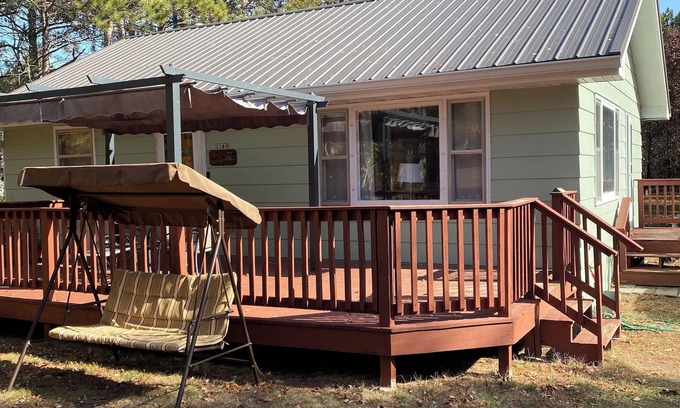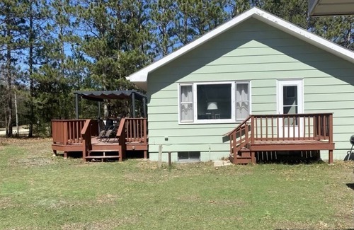 Beautiful house with open floor plan, extra large deck, retractable pergola, two cozy bedrooms, queen-upgraded bed in main bedroom as of 7/1/22. Also queen-upgraded futon in living room. Home is nestled near Castle Rock Lake. Home surrounded by pine trees, deer, blue-jays and numerous other of nature's gifts. Half hour's drive from Wisconsin Dells. Come share a hidden gem our family has enjoyed for so many adventures, campfires, pine-scented air, stars aplenty. Come see what we go to see time and time again...the gorgeous sunsets over Castle Rock Lake. Explore adventures for fishing, boating, kayaking, hunting. Try great BBQ at Shady Akers on County Road Z. shadyakersbbq.com. Want to explore famous Wisconsin Dells? Enjoy the best of both worlds.