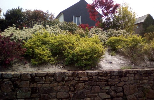 - Typical Breton house with garden near the sea and the Bay of Saint Brieuc