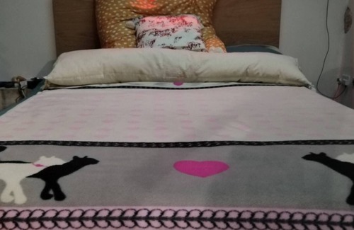 On the second floor, a multifunctional and delightful double bedroom, embellished with bricks hand-painted by esteemed local artists, with attention to the smallest details with a sliding wardrobe consisting of a double bed and a