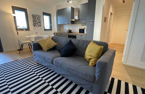 In a city by the sea, the joy of an 80 square metre terrace with a sea view! ... and an elegant and comfortable flat for 4 people in a modern and efficient building.