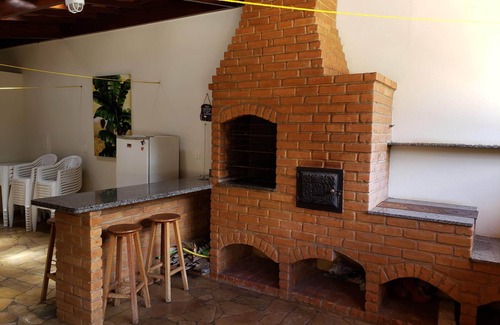 Comfortable house with accommodation for up to 10 people, 03 suites with double bed and 04 additional single mattresses, TV room with fireplace, dining room with table of 08 seats, full kitchen, gourmet area with barbecue, stove and oven. the wood and garage for 03 cars.