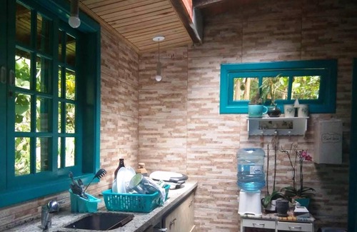 Much green and bird noise make our home an invitation to rest. On the veranda you can see the lake with the tilapia and very green.