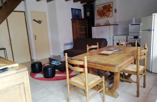 The set consists of a closed courtyard and an enclosed garden, a living room with fireplace (non functional), a bathroom, a landing; two rooms for 2 to 4 people. Ideal for a family of 4