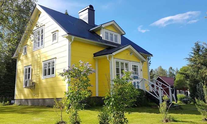 The house is located about 700 meters away from the Baltic Sea, on an island. Parking next to the house are given. Paths for hikers, MTBs, snowmobiles (rental in Örnsköldsvik) can be found in the nearby forest. A restaurant at the ferry port 1 km away invites you to stroll. The supermarket is about 1.5 km away. In the immediate vicinity are sports marinas, an experienced boat service, an illuminated cross-country ski trail, ski slopes and an ice rink (Bjästa). Do not miss a ferry ride to the UNESCO islands of Ulvön or Trysunda with their fishing villages. In addition, fish (pike, salmon) lure kayaking and swimming in the river, lake and sea. As well as the museum of local history and the new art park at Bruksvägen. At the end of the Holmener bay is the Balesuden National Park with its high red rocks. Also, a hike to the nearby virgin forests of the Skuleskogen World Heritage Park of the High Coast, with its cliffs, the High Coast Trail and Stone Age excavations. For families with children, this house with the park-like garden is ideal.