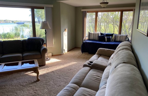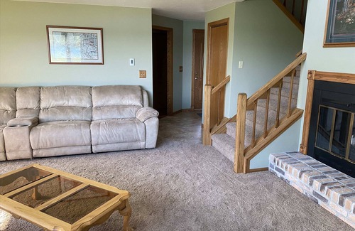 This large 3 bedroom 2.5 bathroom house is located on a peaceful harbor in Door County. It includes 2 living rooms for more space to spread out and relax. In addition, the home includes a grill, fire pit, a kayak, a youth kayak, paddle boat, and water mat for guests to enjoy the waterfront property. The home is also a popular place for ice fishing and is minutes from Potawatomi State Park and Idlewild Golf Course.