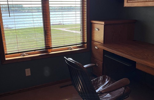 Beautiful 4 Bedroom house on the Missouri River. Ranch style home next to Bismarck/ Mandan area. The dock is in! There are 3 bedrooms upstairs and 1 bedroom in the basement. One full and one half baths upstairs and 1 half bath in the basement. Master bedroom (main floor) has a view of the river. A formal dining area plus a kitchen breakfast area with bay window overlooking the river view. A dedicated office space also with a view of the river. A quiet sitting room on the main floor. Full size washer and dryer on the main floor next to bedrooms 2 and 3. Giant deck on the river side of the house. Two stall garage with a large guest parking pad off to the side. Internet is up and running. TV in the master bedroom and the living room.