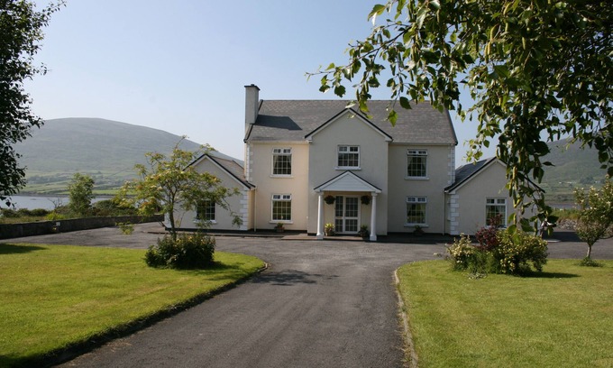 Relax in this updated, spacious waterfront home with stunning views and ample outdoor space to enjoy the dramatic outlook on the River Fertha, Knocknadobhar Pilgrim Path and the Beentee Loop Hill walk. Enjoy unrestricted access to your own private shoreline at rear of house - this is tidal. Each of the 6 bedrooms have compact en suite facilities - in addition the house has a bathroom upstairs. Lounge, Dining Room and Kitchen are very spacious. On the Wild Atlantic Way and just 1.5km from town of Cahersiveen in a quiet countryside setting - a perfect get away location for friends and family to relax and spend time together. Available to rent Saturday to Saturday only. Electricity & Oil charged extra