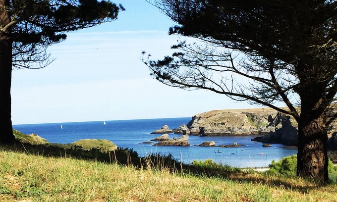 The house is located in a wild corner of the island, in the heart of the peaceful village of Borcastel, on the wild coast to the North West of the island in the town of Sauzon. It overlooks the beach of Ster-Vraz and the cove of Ster-Ouen, a small natural harbor in the shape of a fjord. (as the photos show). On 3 levels, the house is perfect for accommodating 3 couples, and 4 children, with all modern comforts. the beach is below, the departure of walks in the moor and on the wild coast is at the foot of the house.