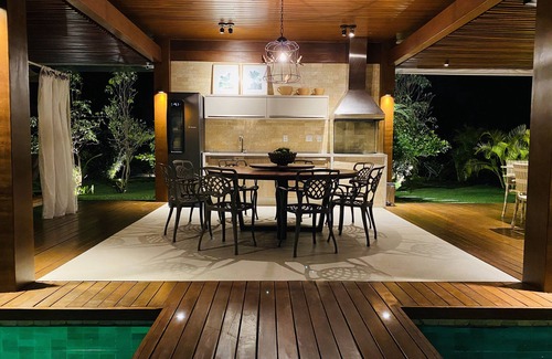 House of very high standard, beautifully decorated, large, 05 suites, closet, furnished, located in Natural Pools, Jacarandás, best condominium of Praia do Forte, fully heated, heated pool with whirlpool, 06 bathrooms, 02 toilets, gourmet space independent of the house with sound system, day bed, full kitchen, outbuilding, Wi-Fi, 02 Sky points, 01 minibar at the top of the house. Seaside condominium, with total security and leisure infrastructure, direct access to the famous Natural Pools of Praia do Forte.