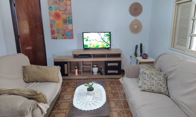 House with barbecue. Near the beach of the center of Rio das Ostras, with 2 bedrooms, 2 bathrooms, one bedroom with en suite, large living room with sofas, SmarTV, with Sky and Wi-Fi. Mosquito screens in the windows.