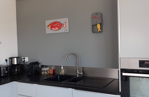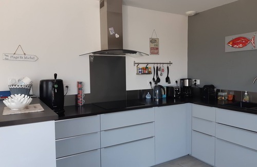 fitted kitchen (fridge / freezer, oven, induction hob, microwave, coffee maker, Nespresso machine, tea, beer engine, electric plancha)