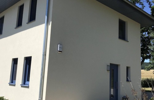 Our holiday home is located at the recreational area Hohenfelden Reservoir about 6 km from the motorway exit Erfurt-Ost. The self-contained holiday home area consists of a total of 28 houses and offers peace and privacy. Newly built in 2017, this holiday home is generously sized and can sleep up to 6 people in three bedrooms, two bathrooms, a living room and a kitchen. The house is about 50 meters from the lake. All bedrooms and the living room have flat screen satellite TV. The kitchen is fully equipped with a dishwasher, microwave and oven. The storage room is a washer dryer.