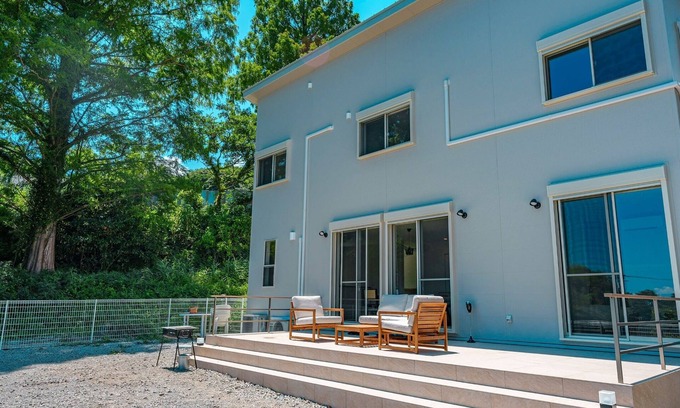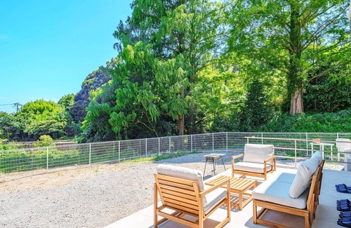 A rental villa located in the mountains about 5 minutes walk from Imaihama Beach The place is surrounded by trees but you can see the horizon from the windows With a dog run you can stay with your dog