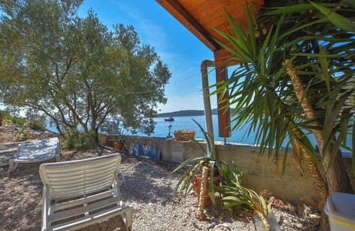 Accommodation Vesela offers space up to 4 guests. Disconnect and enjoy absolute tranquility of this Remote cottage. The picture perfect nature and larger rock fragments beaches are 5 m away. No crowds, no fixed mealtimes and no overcrowded terraces - awake your inner chef using available Grill and indulge in delicious local food. Nice little added bonus is view of Sea.