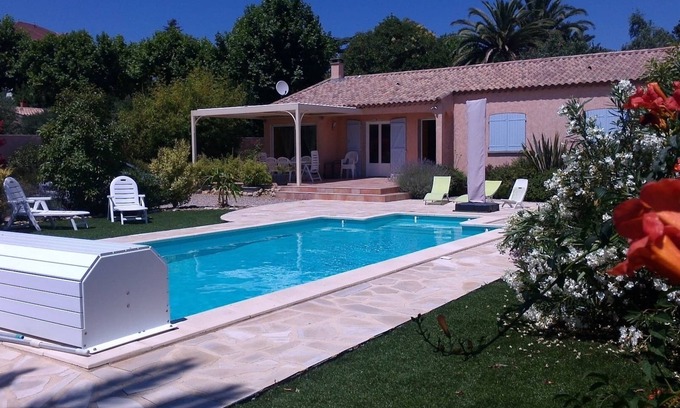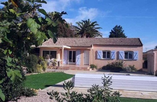 (Text automatically translated) quiet, comfortable, recently renovated, new kitchen (furniture and household appliances recent), large terrace of 40 m2, solarium around the pool, palm tree, beautiful garden, pelouse.Draps provided, no towels. Near the Natural Park of Haut Languedoc. Not far from the sea while preserving the tranquility that contributes to the charm of the small villages in the south. The terrace is partly covered by a pergola with adjustable blades. Bathroom fully restored. Stays season from 3 nights (on request)