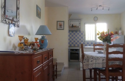 (Text automatically translated) Sleeps 6 with 1 bed grd, 4 beds 1 place 1 joinable therefore, very quiet with 8m x 4m swimming pool facing the scrubland with tarpaulin heat to advance and extend the swimming season, comfortable, tastefully decorated, large terrace of 45 m2 including 25m2 covered, newly built in 2008 near tourist sites in the countryside overlooking the scrubland
