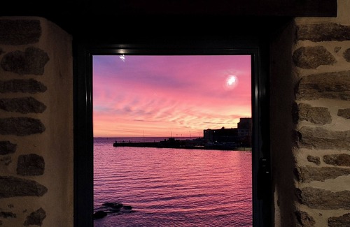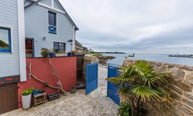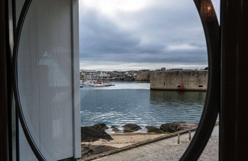 (Text automatically translated) Like a ship anchored at the entrance to the port of Concarneau, this house has a prestigious location. All rooms (except bathroom and WC), an exceptional view awaits you on the sea, the marina and the famous ramparts of the walled city. The show constantly renewed ships in the channel is a constant entertainment. You can access the walled city by taking a small tray (100 meters from the house) through the channel and is proud to carry a smaller world cruises. The benefits of this home owner are upscale. Built in 2006, it enjoys the advantages of a newly built, but the choice of quality materials used (stone, wood ...) gives it an authentic charm and undeniable charm. The decor is neat, warm and personal.On the main level, it consists of a separate kitchen with a living-dining room, both opening onto a wooden deck overlooking the sea (There are toilets at this level). Upstairs, two bedrooms with double beds (one bed of 160 and 140) and a bathroom with a large shower and toilet.Bed linen and towels can be supplied as an option.Parking is easy in front of the house and you can park a car in the private wooded yard and kitchen of 60m ².Personal choice, there is no TV in the house, but a broadband WiFi connection is available.This property welcomes you for a week 17 hours from Saturday to Saturday 10:00.