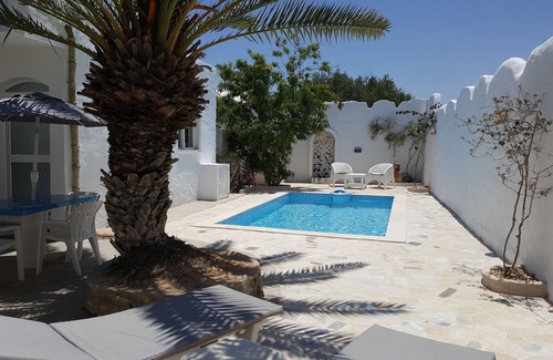 (Text automatically translated) in the countryside, in the heart of the island of Djerba. charming villa comfort and very nice, well fenced. "haven of peace". pool, sunbeds, barbecue, boules garden ....