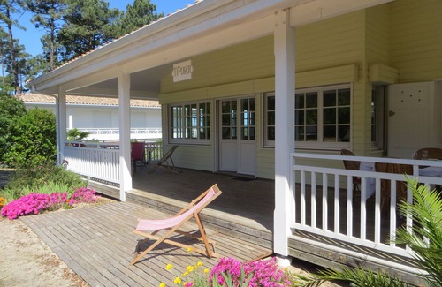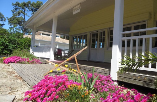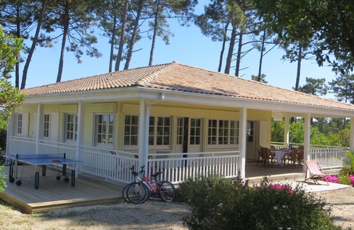 In a nice lot of a beautiful pine forest, near large ocean beaches with golden sand, well-kept deco and all cumfort, a very large terrasse and well planted garden