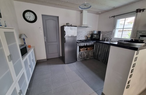 (Text automatically translated) Recent construction, away from roads in a private road close to the beaches and woods, quiet and sunny, tastefully decorated, comfortable, spacious closets, large pantry, electric towel rail, garden terrace south side fenced yard with bicycle. north side garden and private parking for 49 m2.tarifs decreasing according to the durée.tout, highchair, cot, stroller, bathtub.
