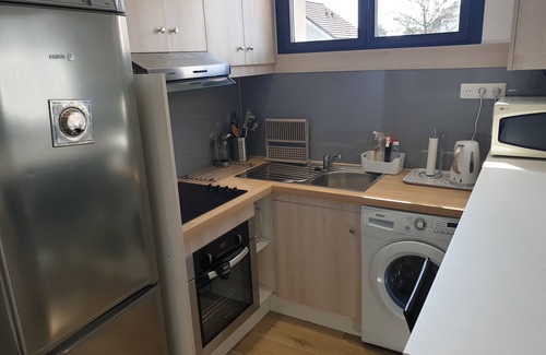 The kitchen is equipped with an oven, a stovetop, and a refrigerator, as well as a coffee maker, an electric kettle, and a microwave. Bathroom amenities include a hair dryer, towels, and toilet paper. And you won't have to pack extra clothes, because you'll have a washer and dryer, too. Other amenities include a BBQ grill, bed sheets, an ironing board, and heating.
